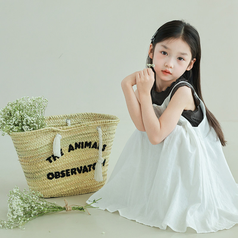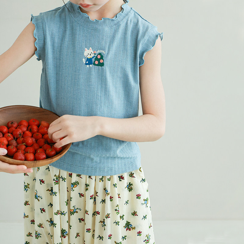 📚 大耳象女童花边卡通T恤夏款儿童休闲修身弹力无袖上衣
