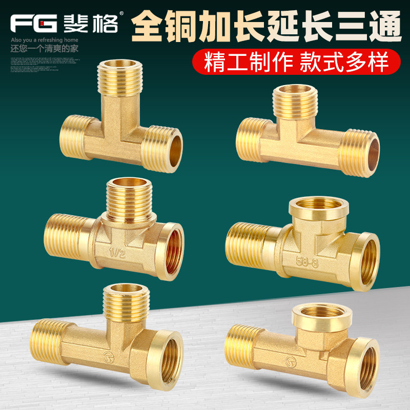📚 4分全铜加长三通一内二外热水器三外丝分水延长水管铜配件接头