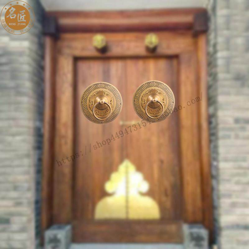 📚 大门铜门环中式装饰大门铜把手纯铜圆形门环拉手覆古实木门门把手