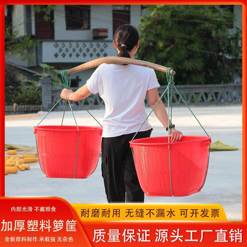 📚 箩筐塑料加厚农用熟胶谷挑担粮食西瓜圆形箩篼大小号结婚喜庆箩筐