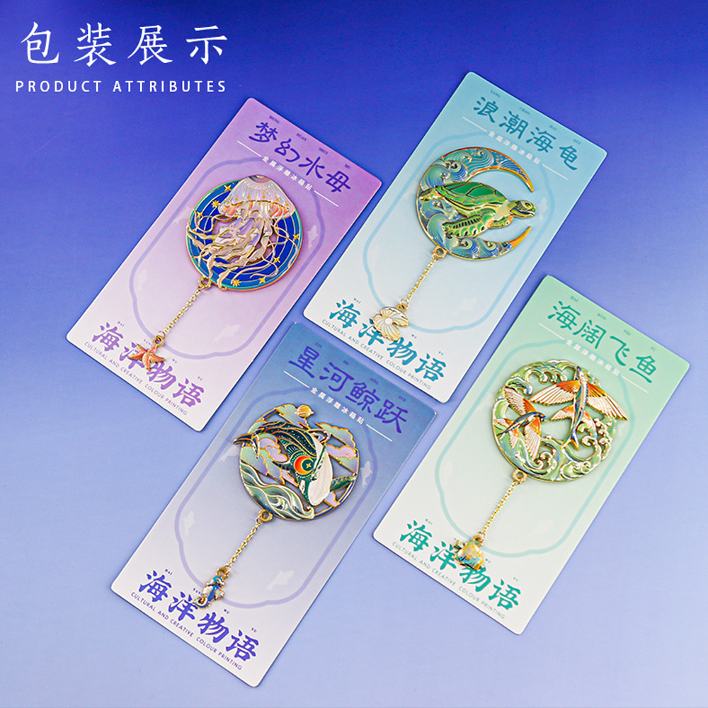 📚 海洋物语冰箱贴金属海龟水母博物馆文创旅游纪念品中国风学生礼品
