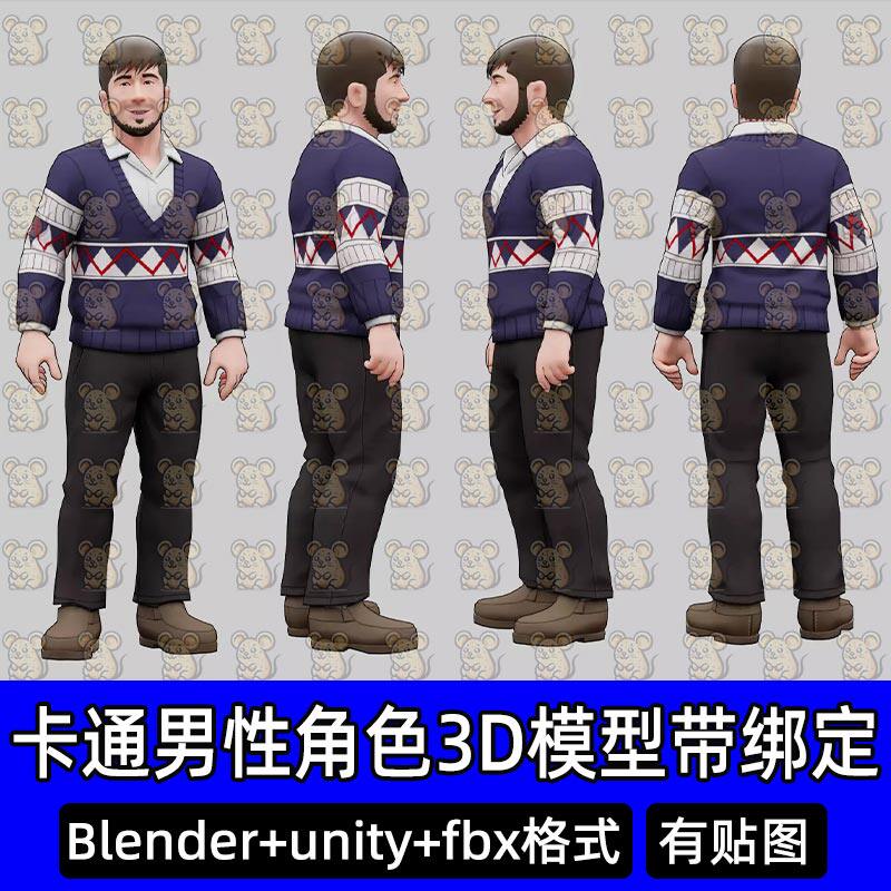 📚 Blender unity风格化卡通男性角色大叔人物3D模型带绑定FBX C4D