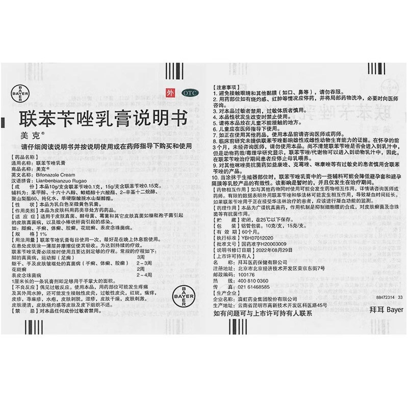 📚 美克联苯苄唑乳膏10g皮肤真菌病手足癣体股癣花斑癣皮肤念珠菌OTC