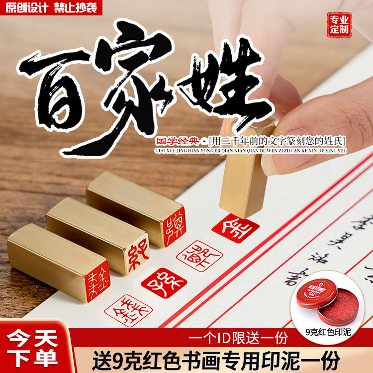 📚 百家姓定制纂刻印章姓氏铜章定刻书法书画实心黄铜印闲章迷你便携