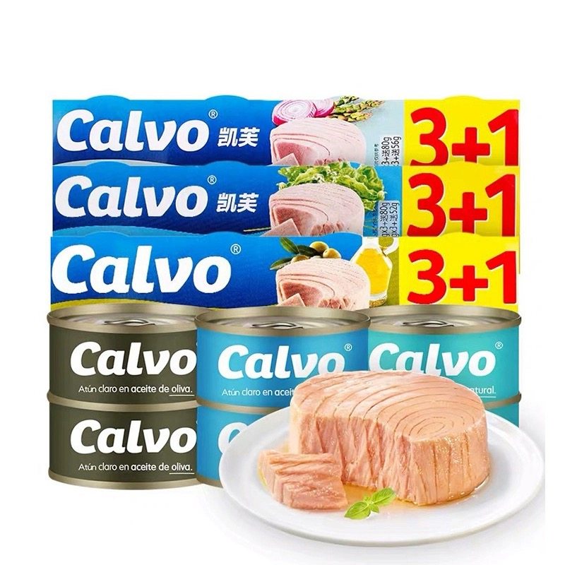 📚 西班牙进口Calvo凯芙盐水浸原味低脂原块金枪鱼罐头橄榄油葵花籽