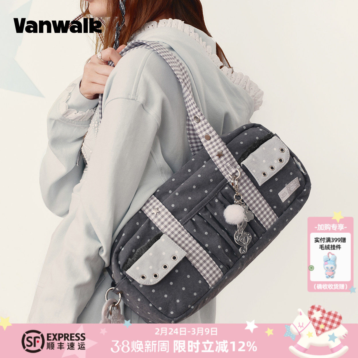 📚 VANWALK lucky pony新款少女波点单肩包通勤百搭外出手提腋下包包