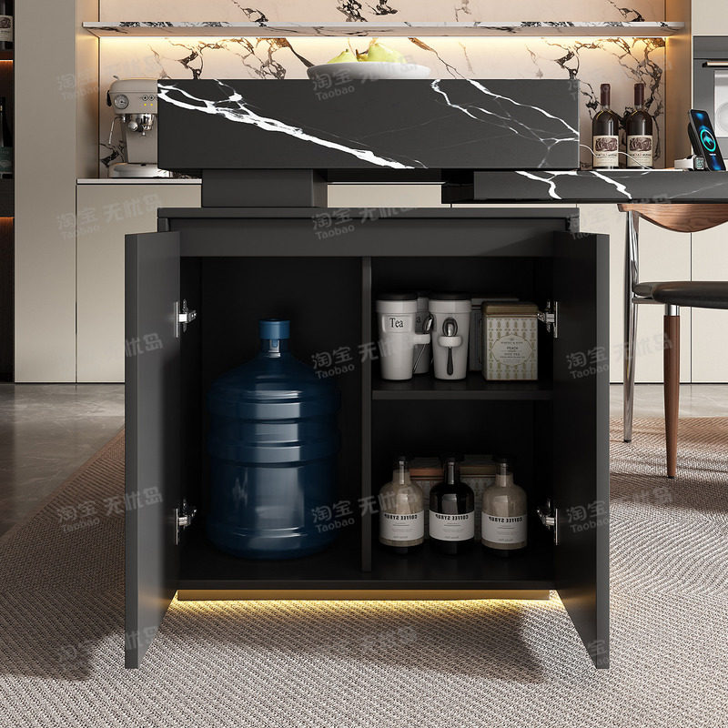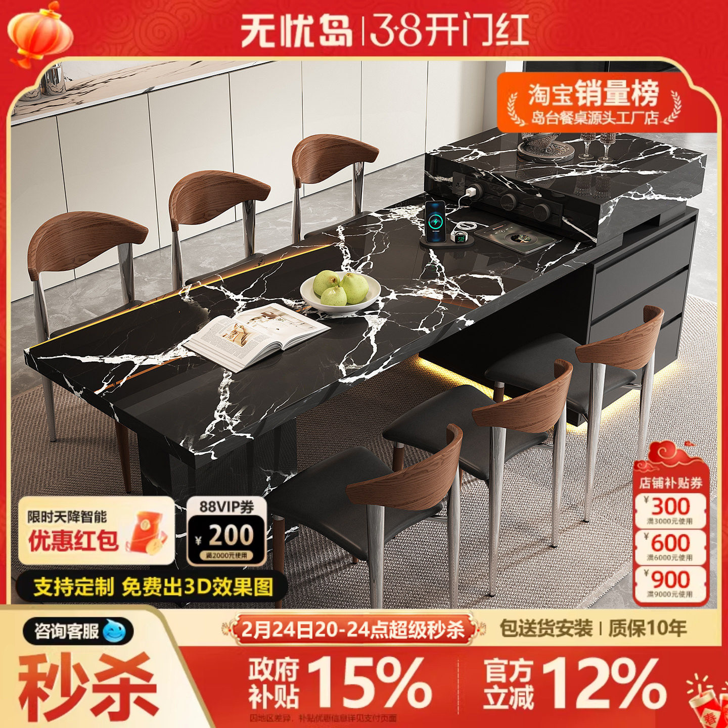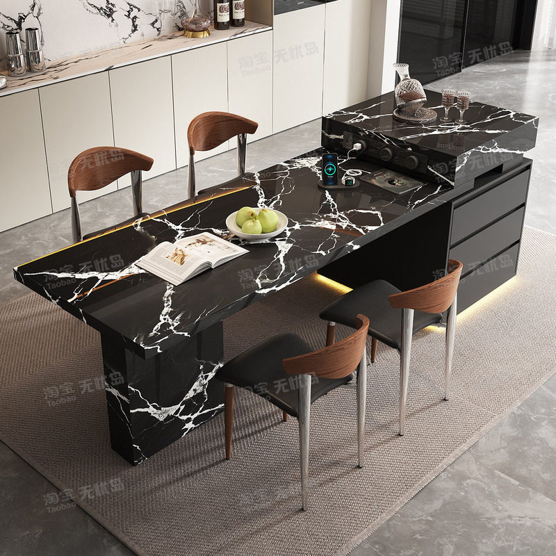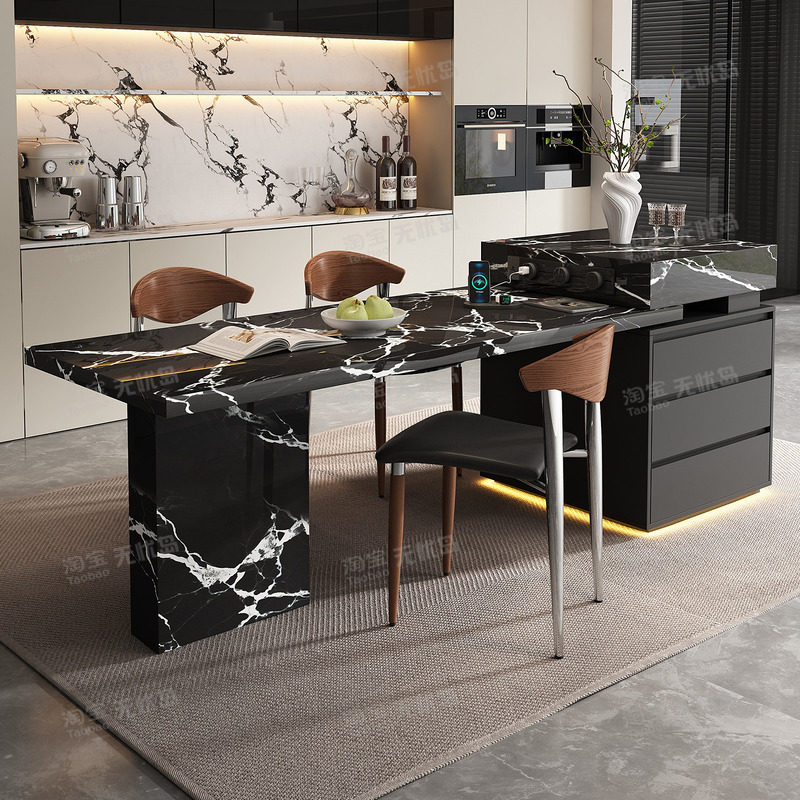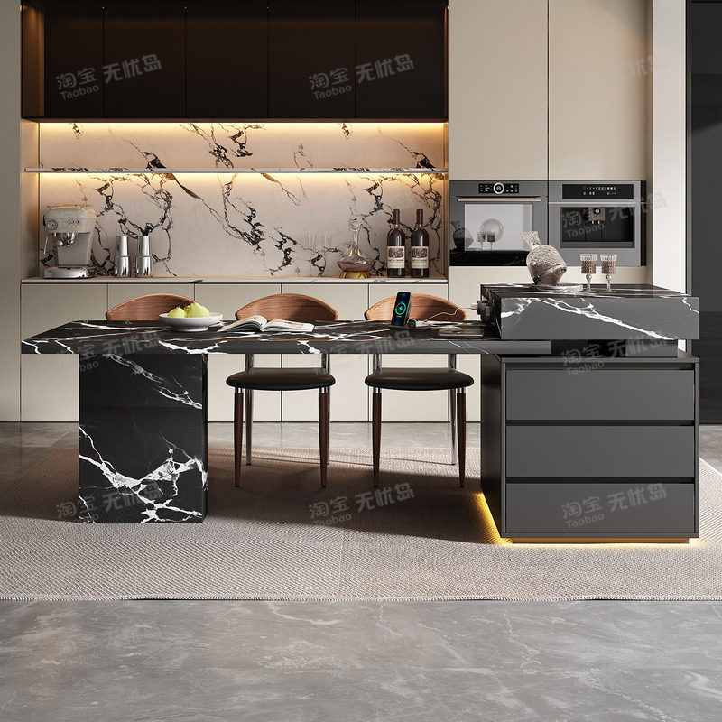 📚 意式极简宝格高端丽黑岛台餐桌一体可伸缩高级感岩板倒厨房中导台