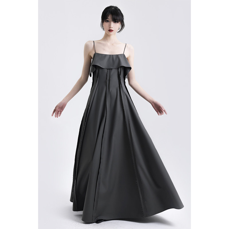 📚 APOZi collection 山水序曲夏季新款中式设计感未完成毛边吊带裙