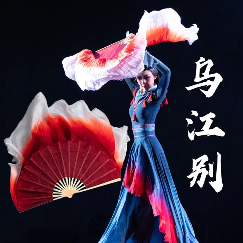 📚 乌江别舞蹈扇子古典舞真丝双面加长红万疆酒红色渐变跳舞专用道具