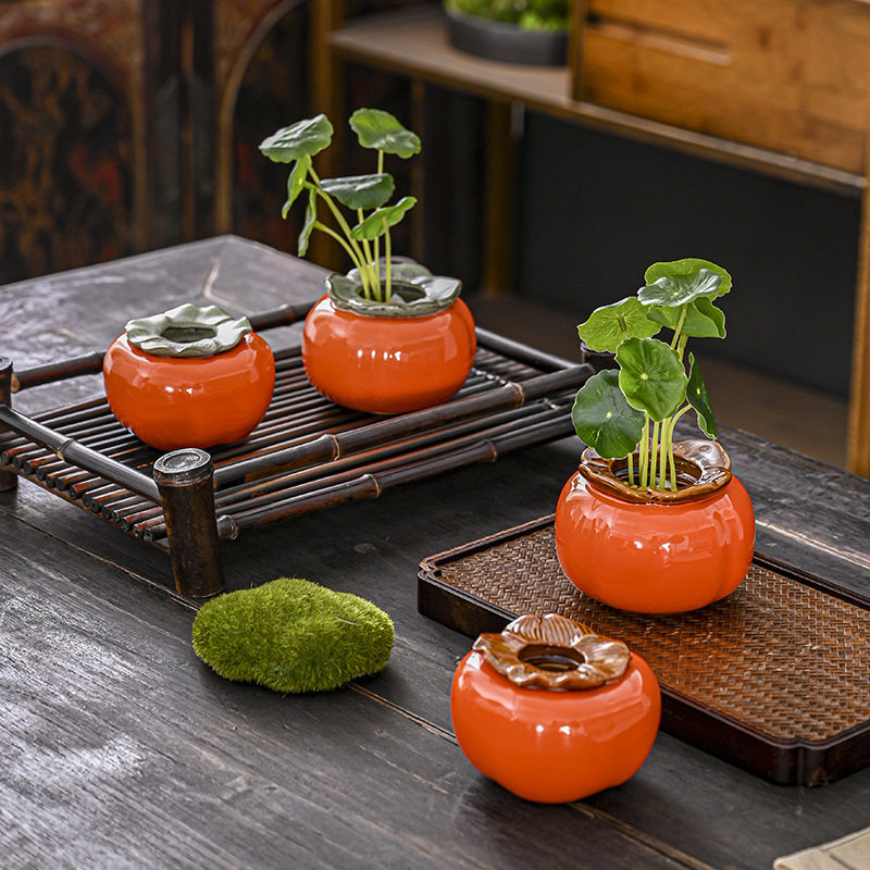📚 柿柿如意水培花盆水仙花睡莲铜钱草无孔陶瓷客厅酒店干花摆件花器