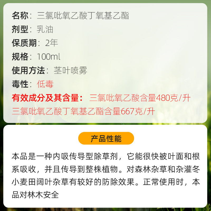 📚 屠灌林保 三氯吡氧乙酸除灌木乔木除藤蔓阔叶杂草园林专用除草剂