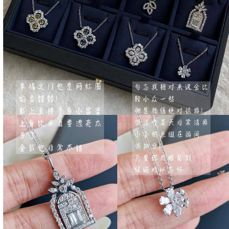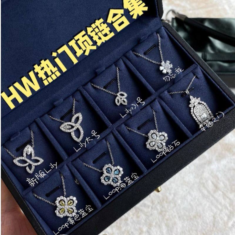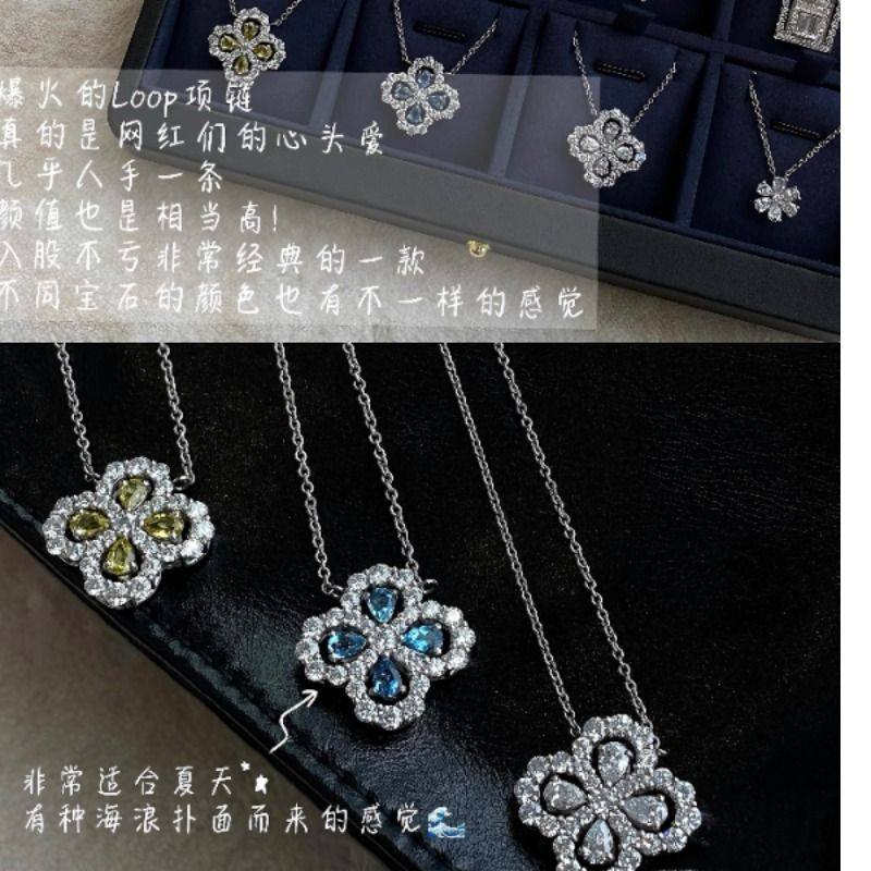 📚 高定HW项链loop花型ins四叶草耳钉高级锁骨海蓝宝锁骨链女款