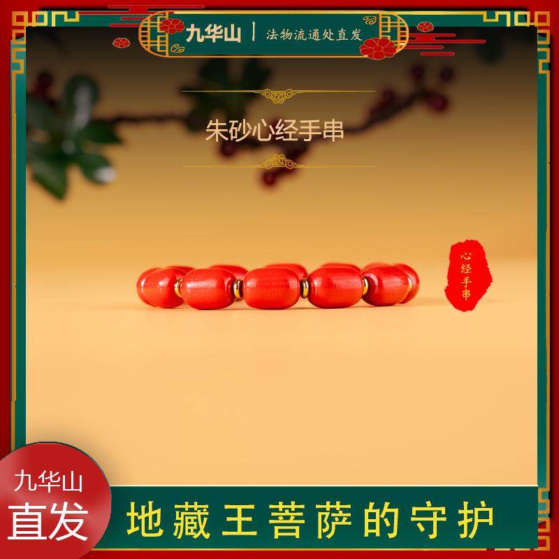 📚 九华山法物流通处直发天然红砂转运珠心经天然朱砂护身手链