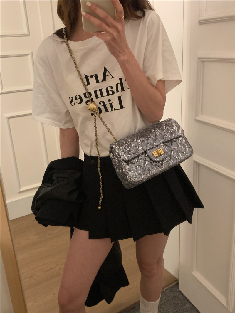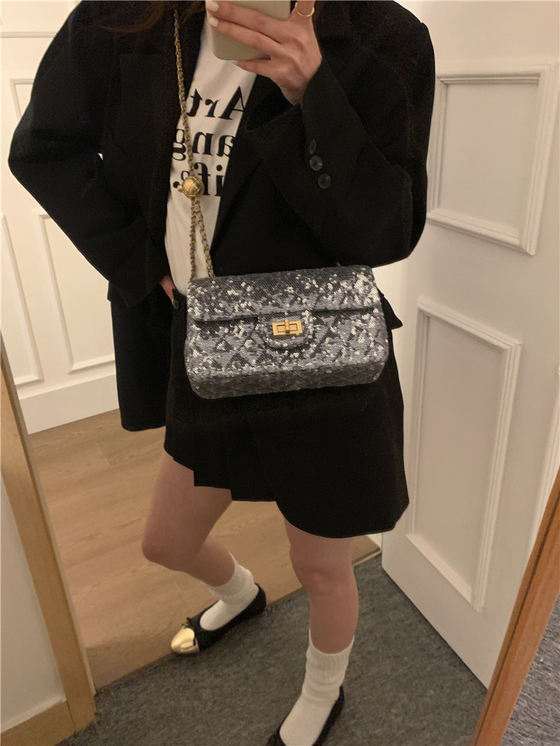 📚 韩国东大门ins女包2023甜美时髦bling闪闪亮片小香风单肩斜挎包包
