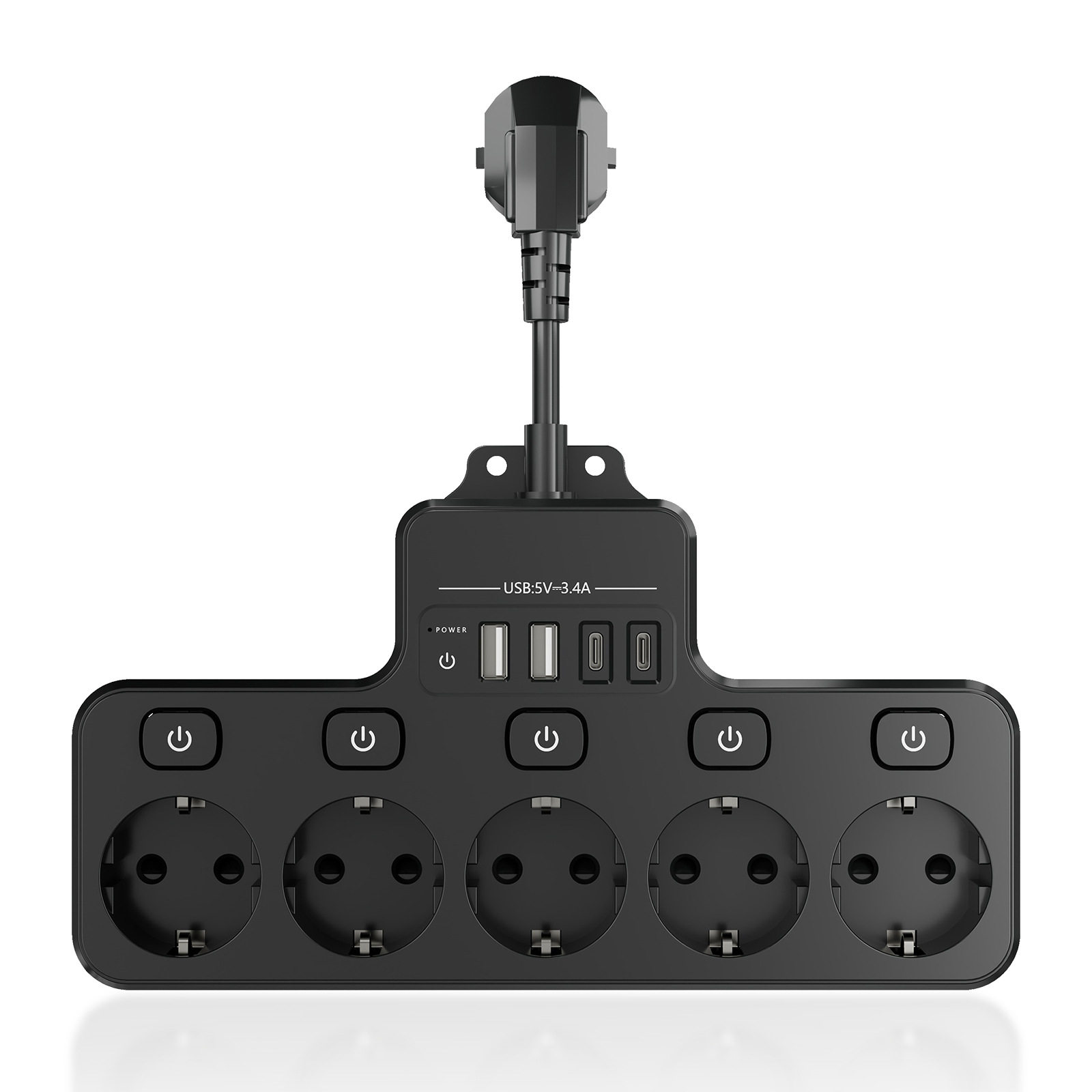 📚 4000W EU AC Plug Power Strip Independent Switch Wall Mounted