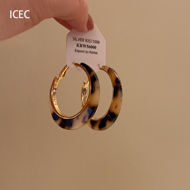 📚 美拉德焦糖色豹纹耳圈简约夸张适合脸大的耳环复古港风设计感耳饰