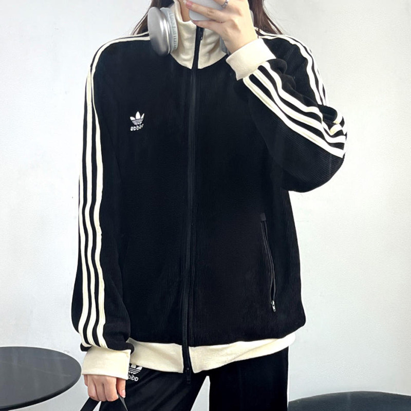 📚 阿迪达斯三叶草男女装2025春季华夫格复古条纹立领夹克外套JW0109