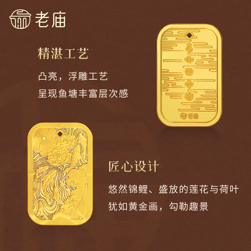 📚 老庙黄金足金鱼富富有鱼精致荷韵鱼祥年年有鱼收藏送礼工艺金条