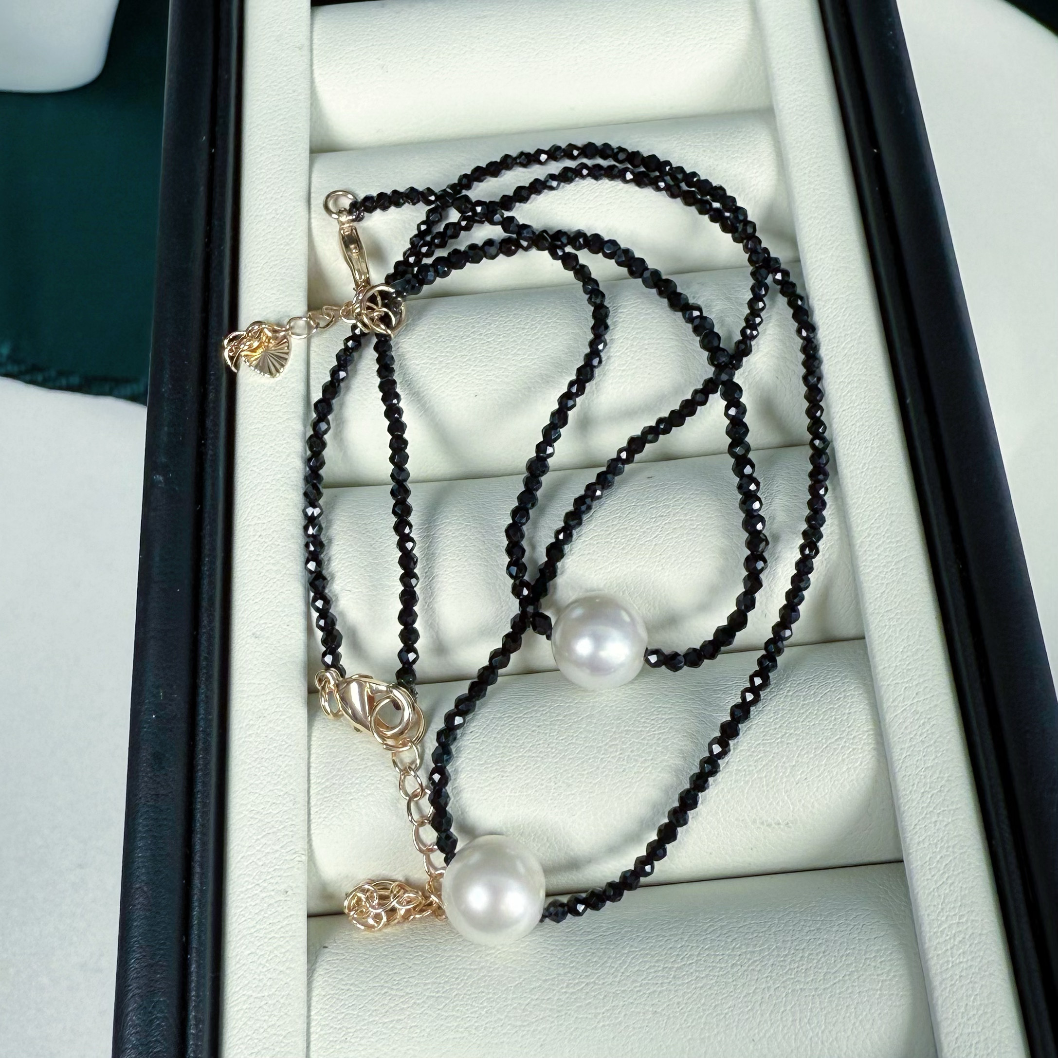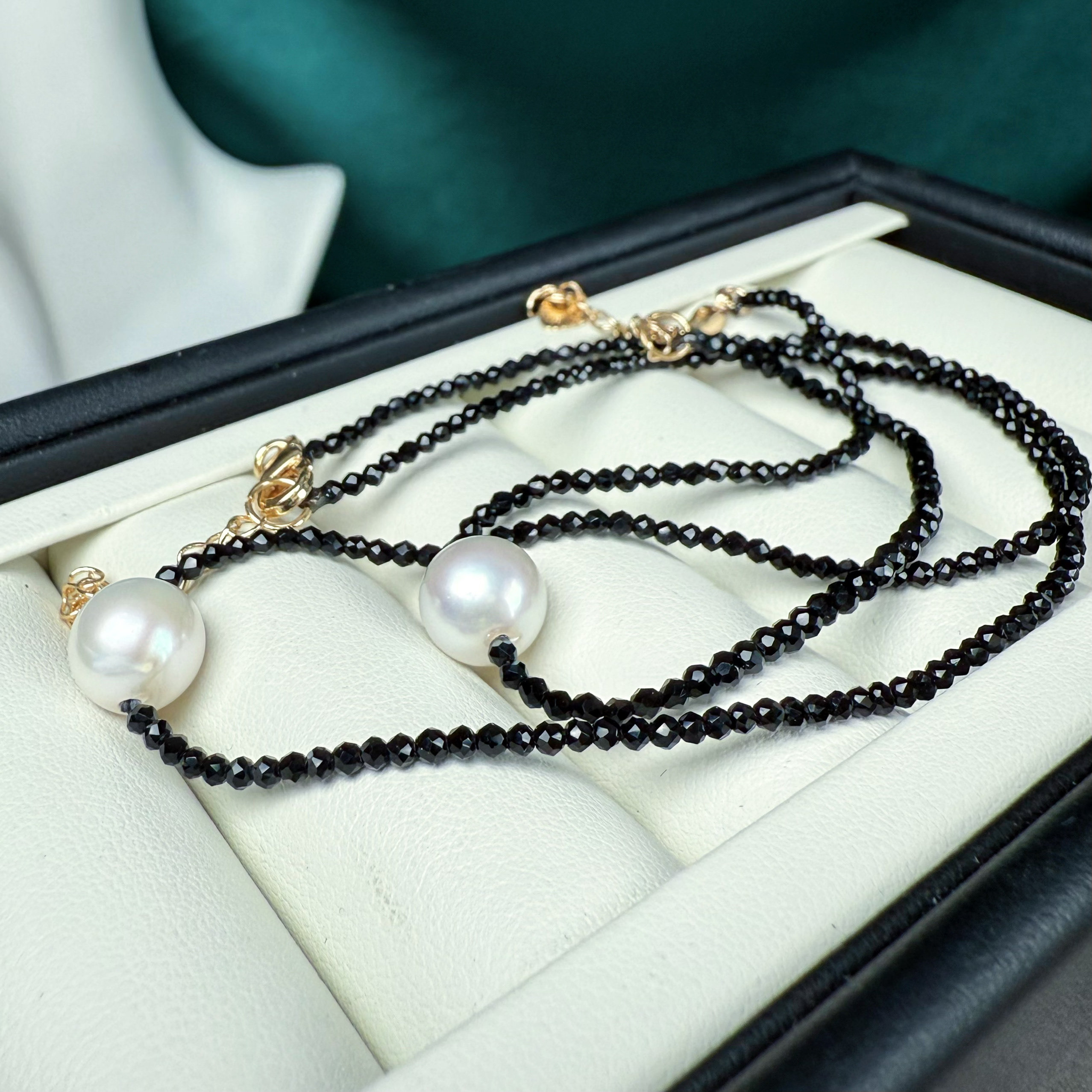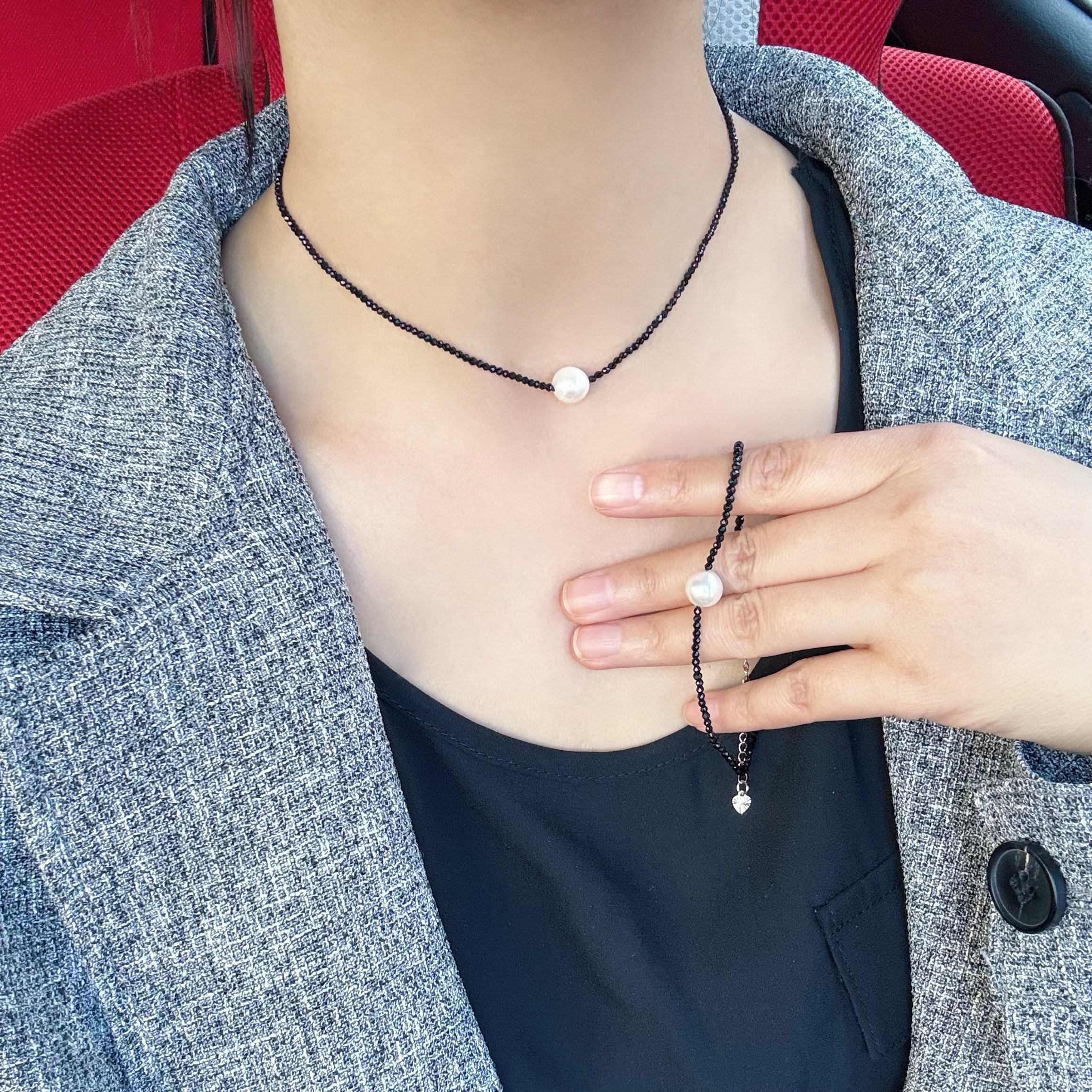 📚 一物一拍极光正圆无瑕天然珍珠黑尖晶Choker项链锁骨链手链套装