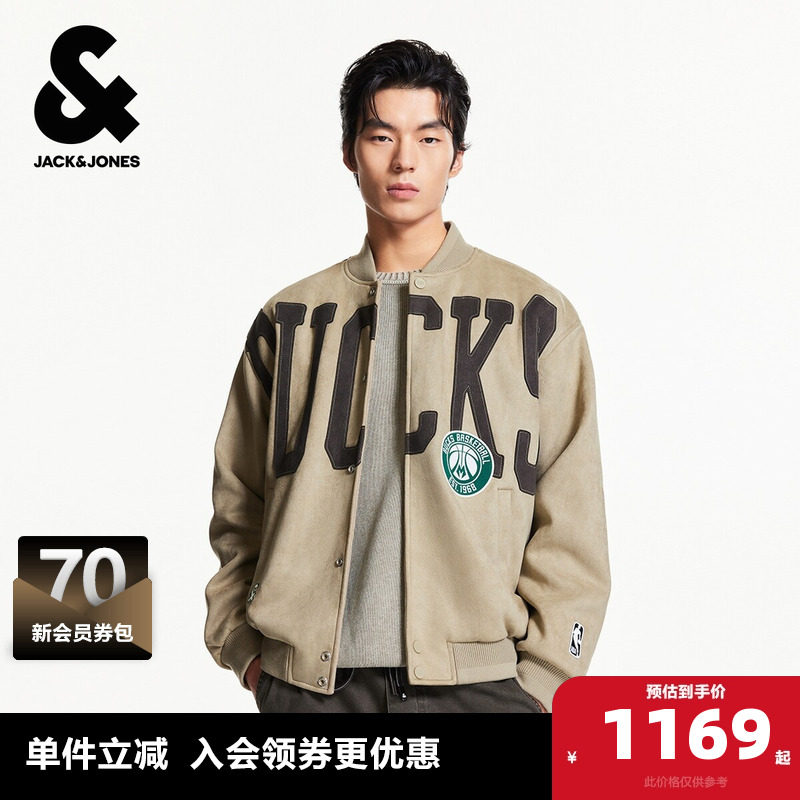 📚 杰克琼斯奥特莱斯NBA联名雄鹿队男装羽绒服冬季刺绣棒球领上衣