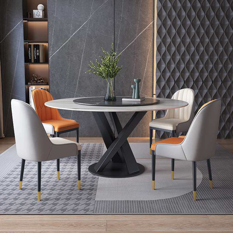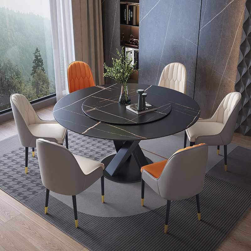 📚 南康家具岩板餐桌现代简约轻奢圆桌圆形餐桌小户型餐桌椅组合家用