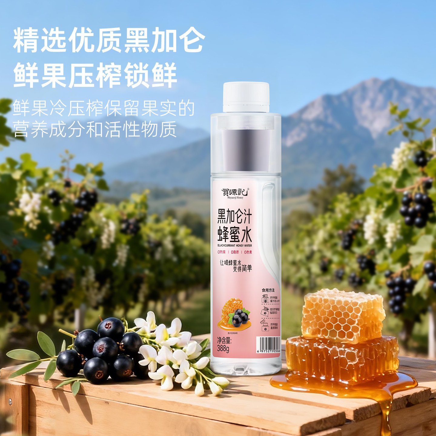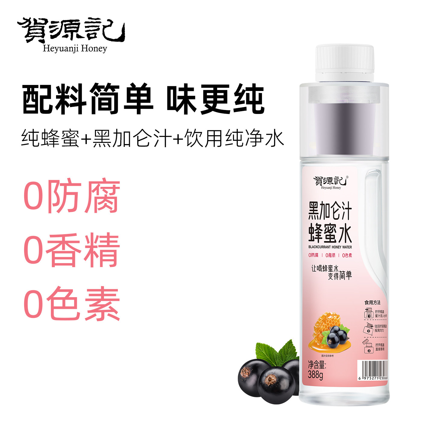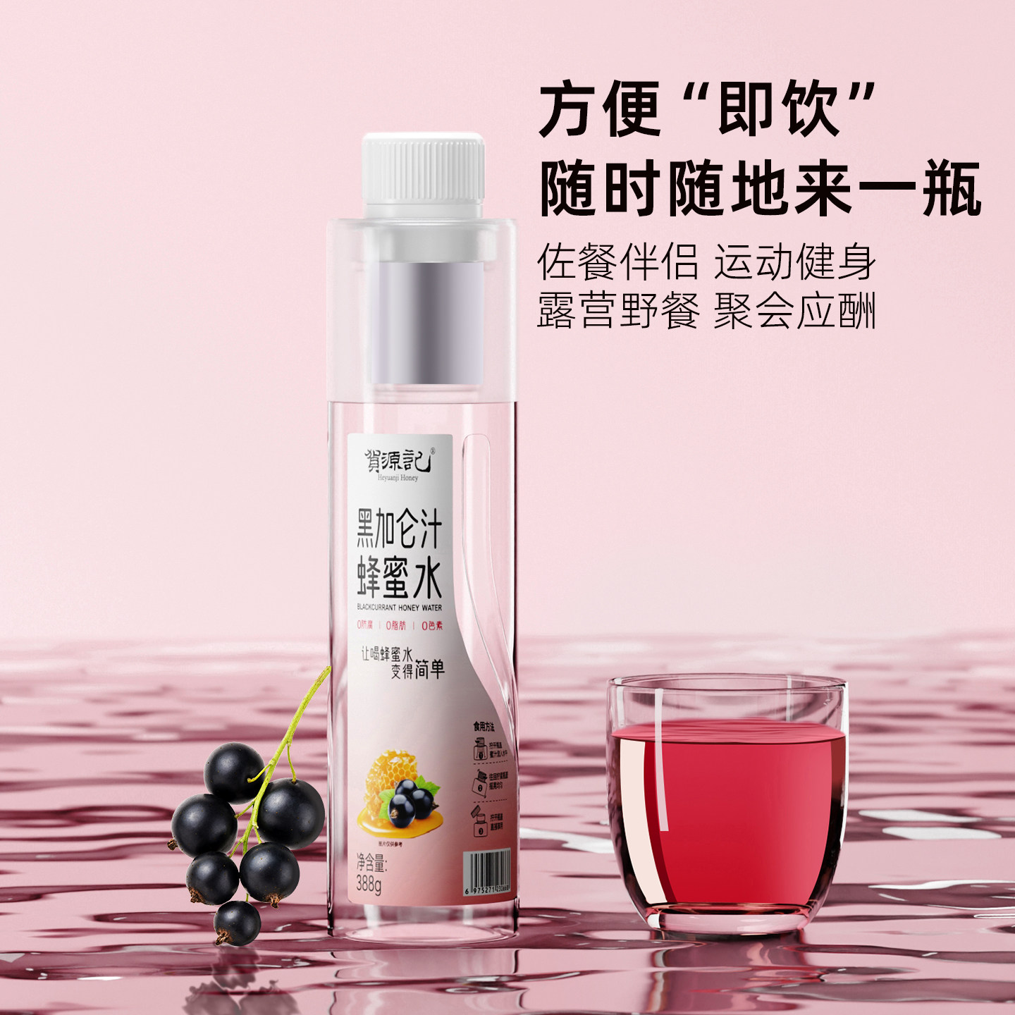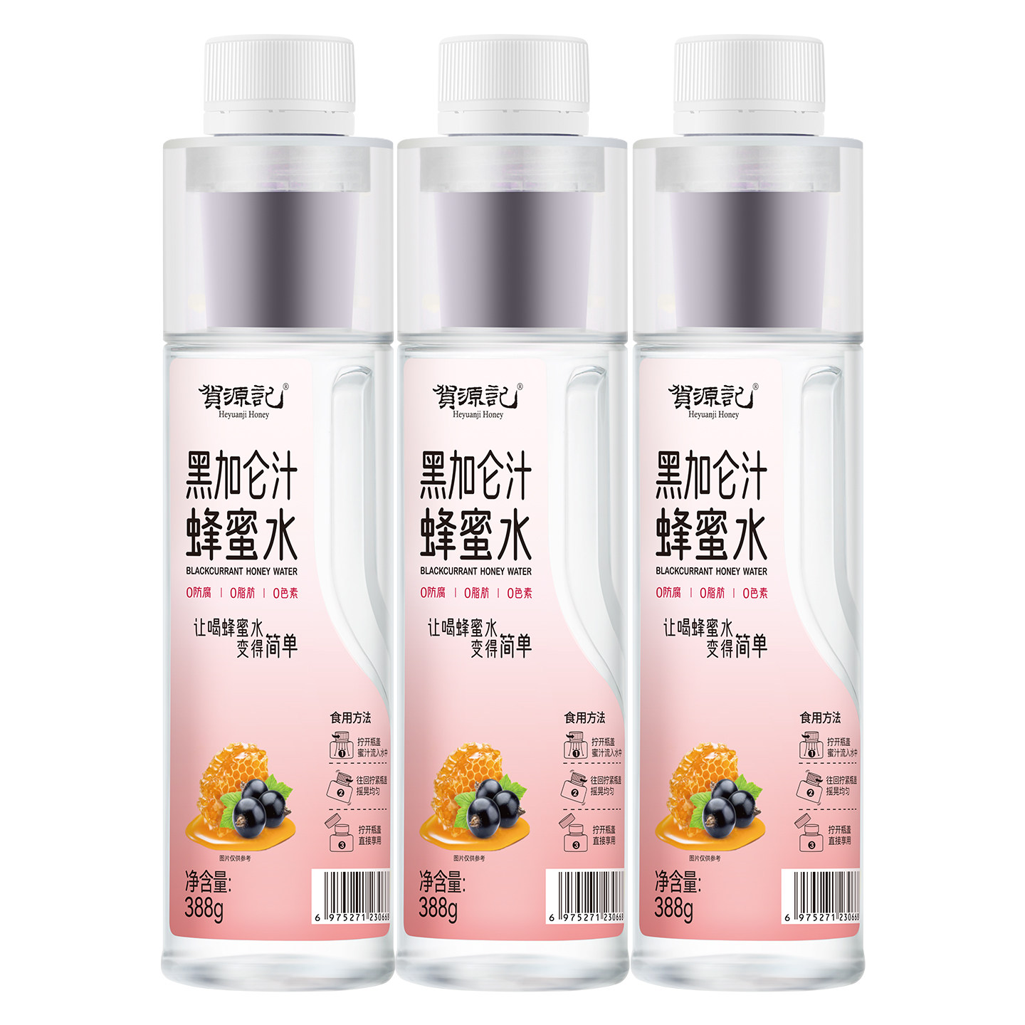 📚 贺源记黑加仑汁蜂蜜水388g*6瓶蜜水分离式瓶盖健康果汁饮料火锅