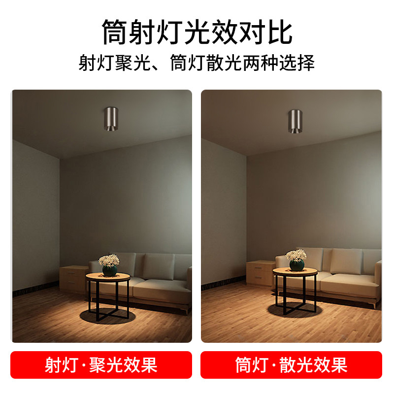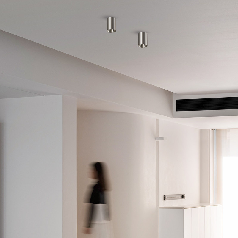 📚 繁简包豪斯明装筒灯家用免开孔镀镍不锈钢色客厅背景墙吸顶筒灯