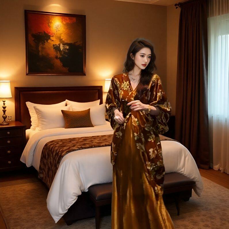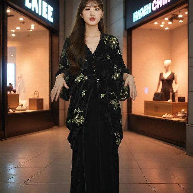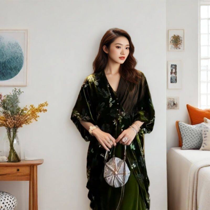 📚 三吉同款【锦上花】新中式国风丝绒烂花连衣裙子秋季巨好看的长裙