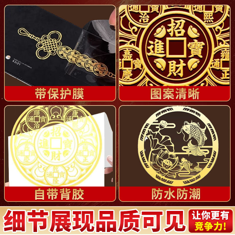 📚 净秽迎财天官赐福五帝钱入户金属门贴开门见鞋柜隐形门贴合金