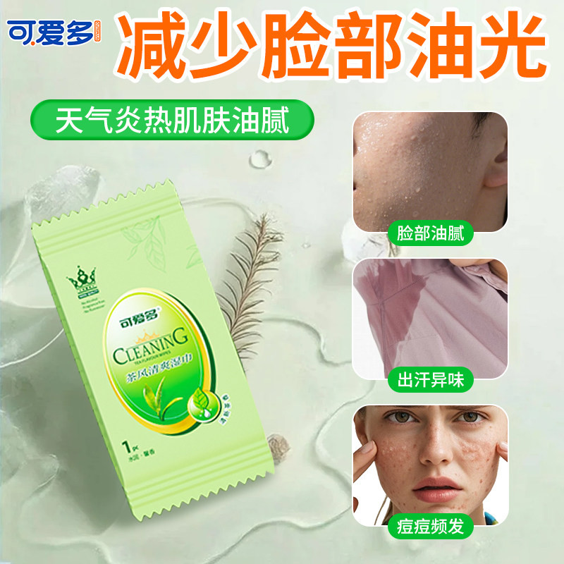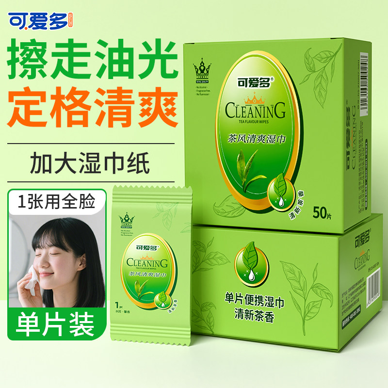📚 可爱多清洁湿巾擦免洗脸擦汗去油洁面湿纸巾学生专用绿茶单片独立