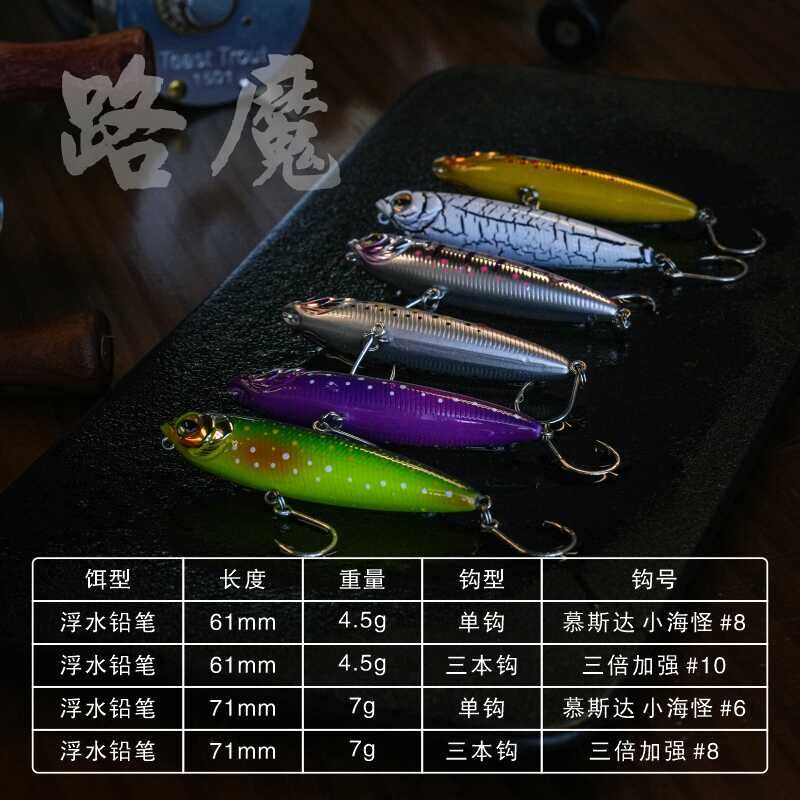 📚 路魔水黾浮水铅笔远投之字狗水面系路亚饵专攻R军鱼翘嘴鲈鱼红眼