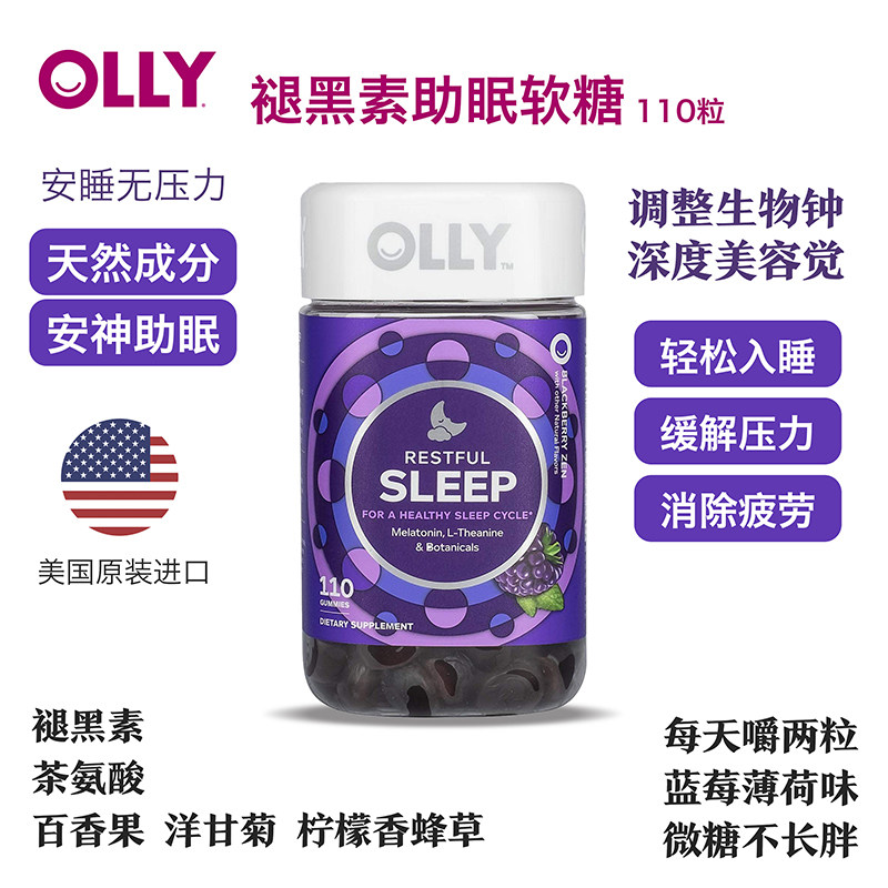 📚 OLLY褪黑素软糖安瓶助sleepwell眠褪黑色素睡眠片睡110粒【临期】