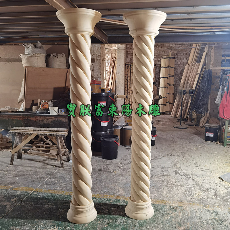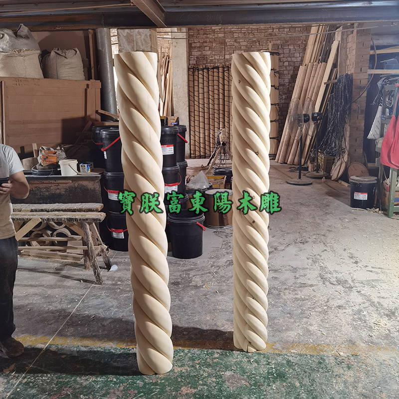 📚 东阳木雕实木欧式麻花柱空心木制垭口装饰包水管定做松木螺纹柱子