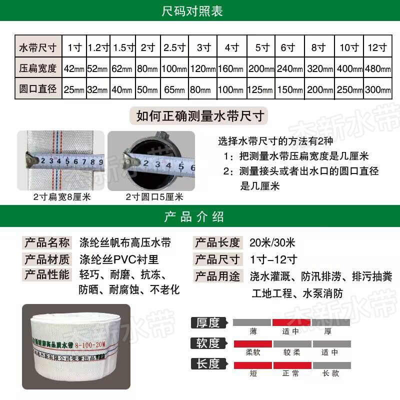 📚 农用消防软管帆布水管带高压耐磨灌溉园艺浇地1寸1.5寸2寸潜水泵