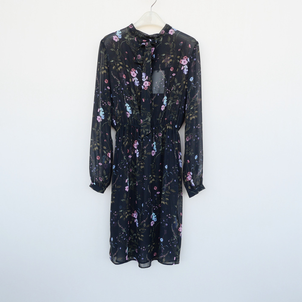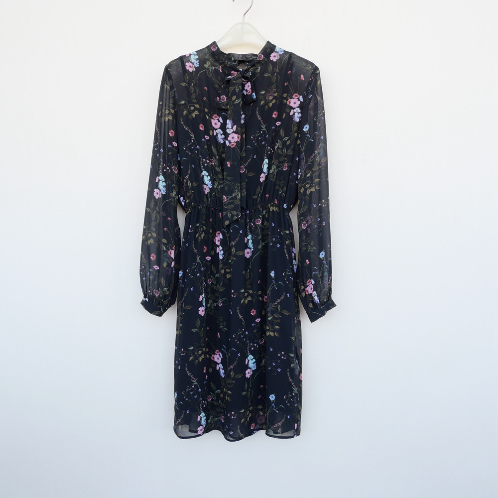 📚 拉系列S/M专柜断码 女春夏雪纺收腰及膝长袖连衣裙5A8349印花混色