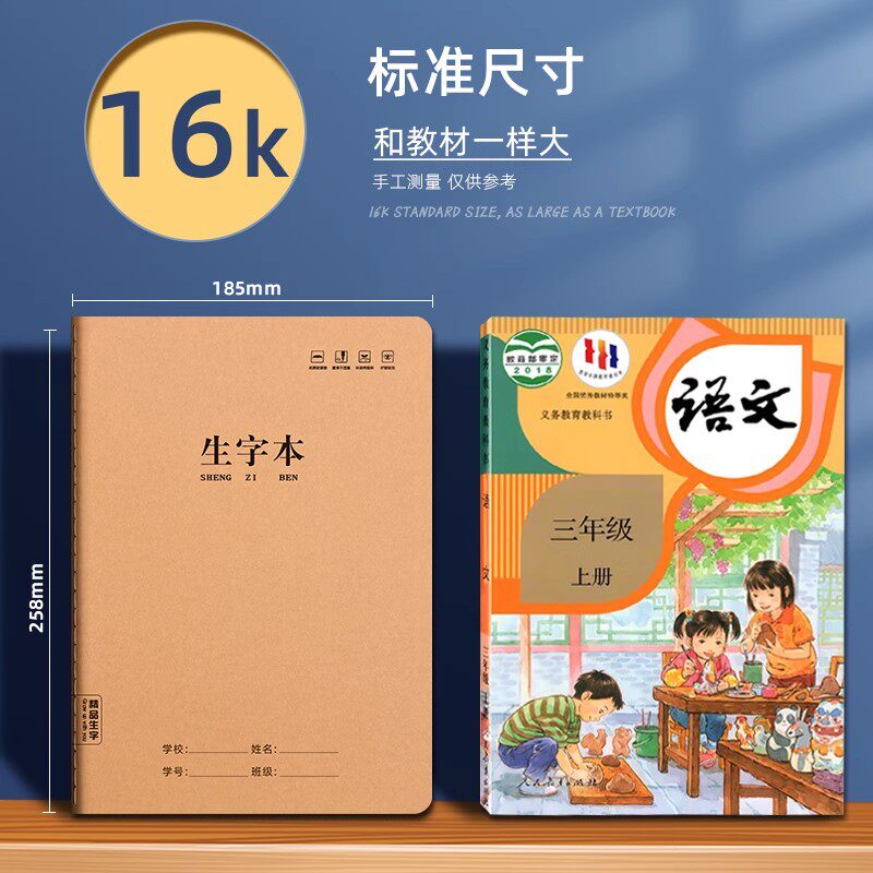 📚 16K小学生作业本田字本一二三年级生字本学校统一练字本大号加厚字格写子田格本英语本语文本学生课业本批发