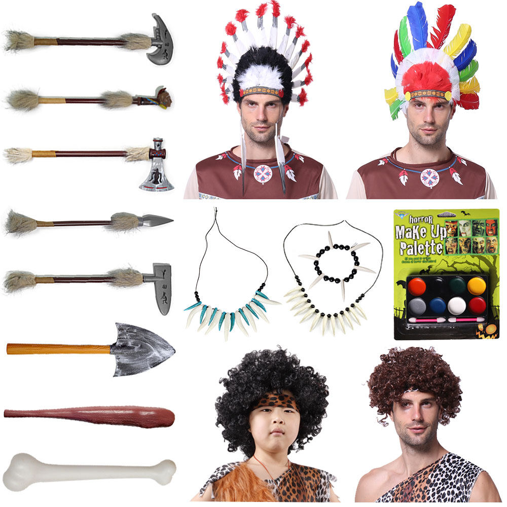 📚 野人道具印第安非洲土著人油彩武器项链手链骨头饰羽毛头野人棒子