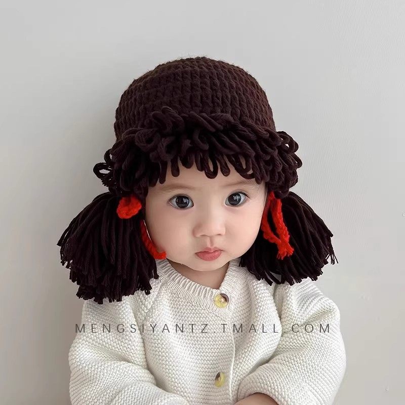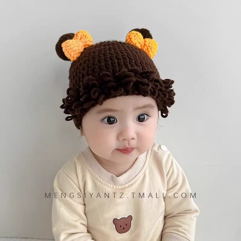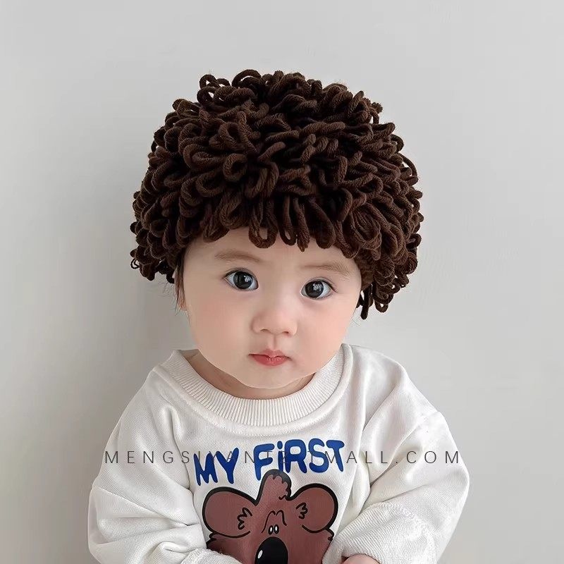 📚 婴儿搞笑帽子宝宝可爱假发帽子网红婴儿童个性头发套男女童卷发帽