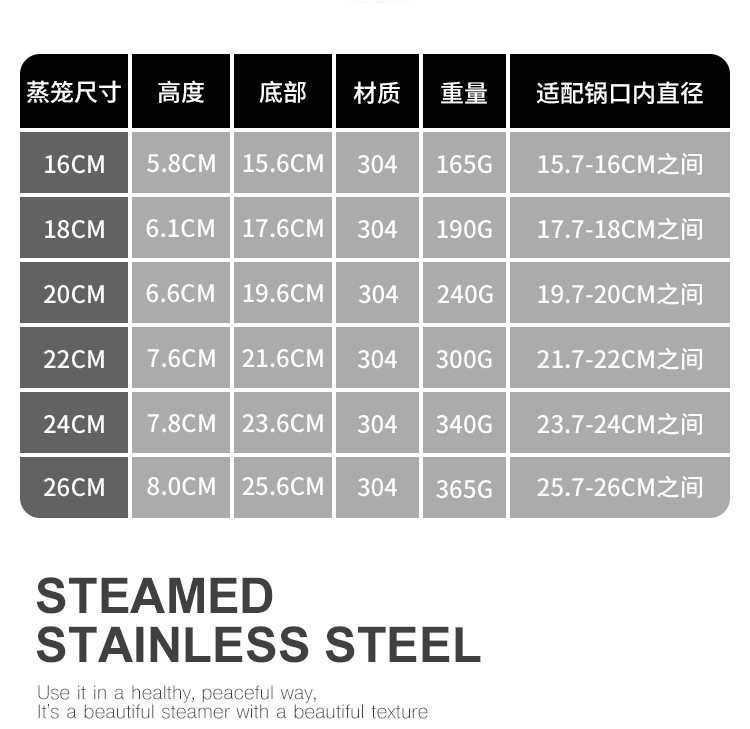 📚 食品用304不锈钢蒸屉奶锅汤锅蒸格蒸笼篦子蒸架蒸片18/20/22/24cm