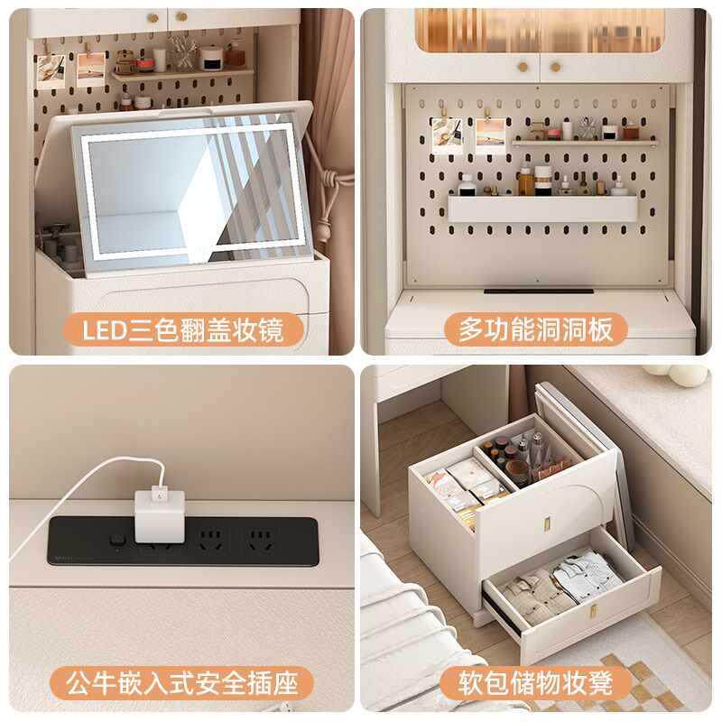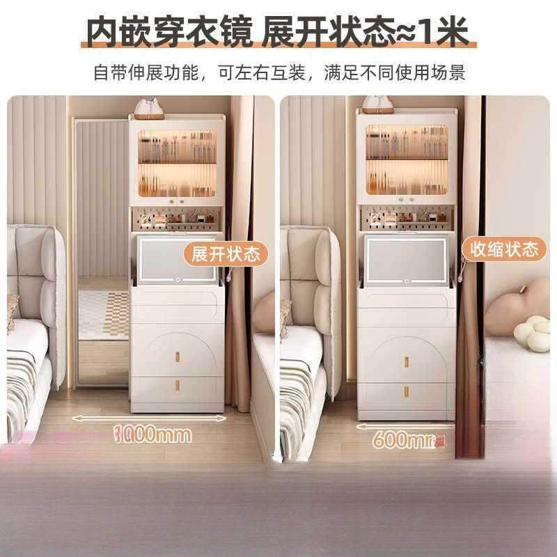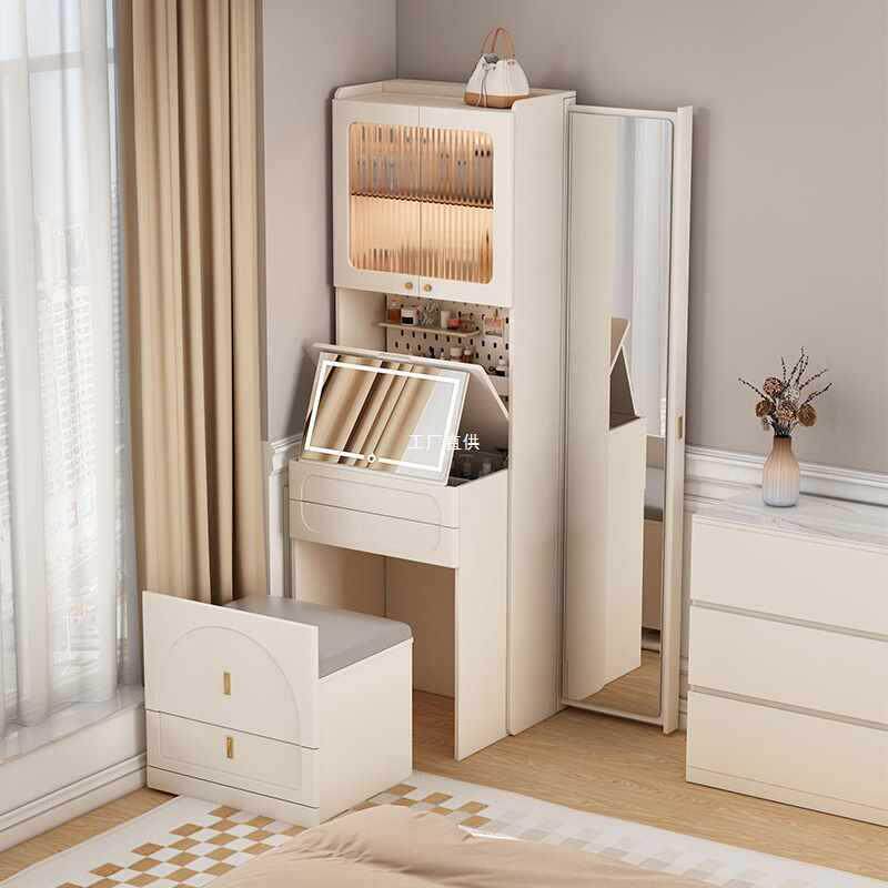 📚 奶油风生卧室PSN梳妆台高柜穿衣镜一体收全纳角落女隐化妆桌藏式