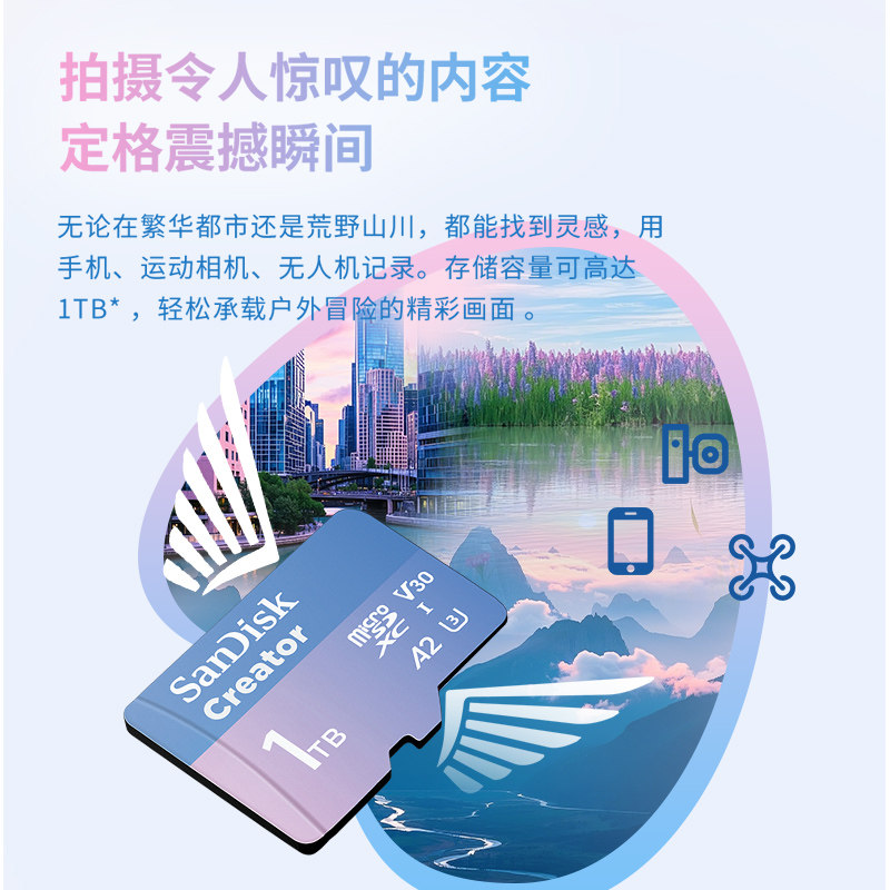 📚 闪迪创作者TF内存卡128g大疆pocket3运动相机256g存储卡无人机