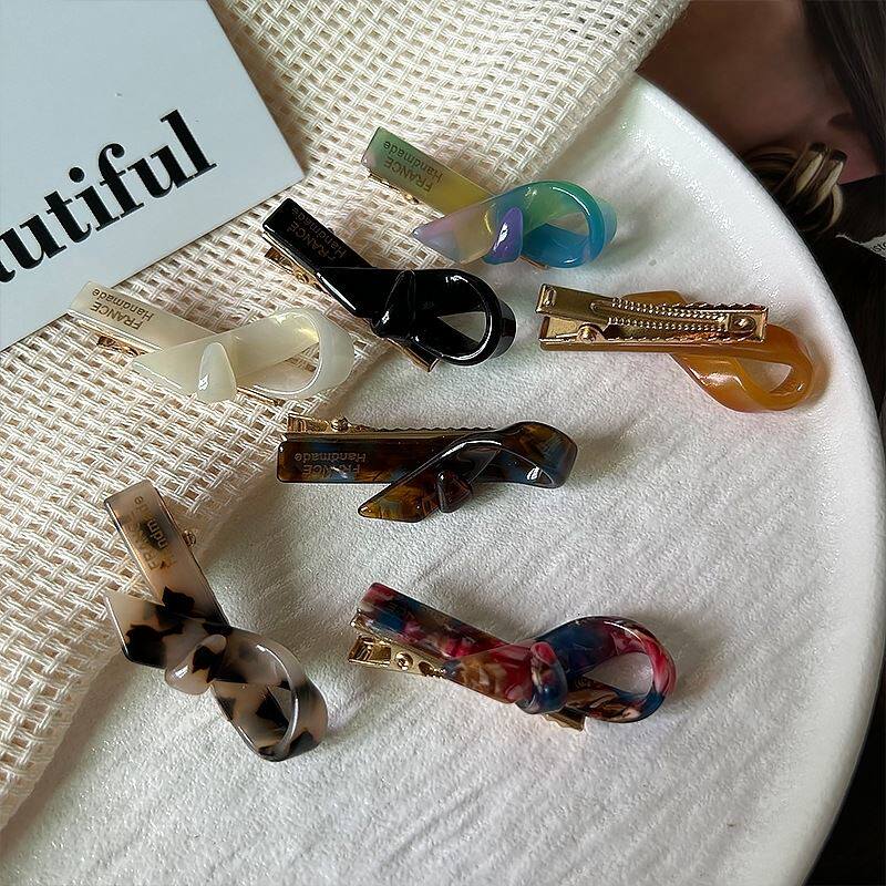 📚 精致小号碎发夹侧边浏海夹气质醋酸蝴蝶结发卡高端一字鸭嘴夹法式