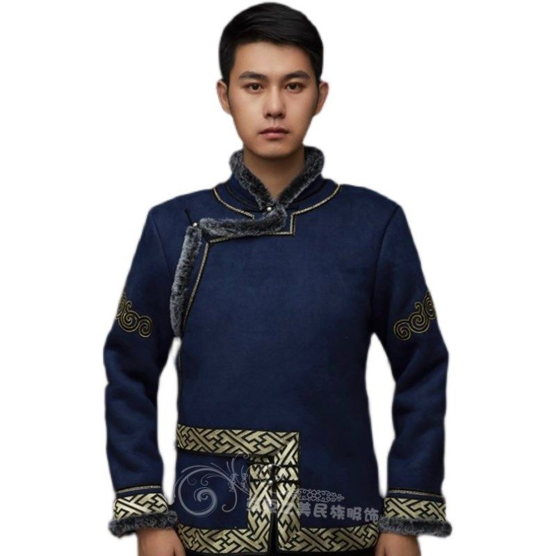📚 冬季蒙古服男士仿鹿茸皮棉袍蒙族棉衣短外款加厚蒙古袍日常装新品