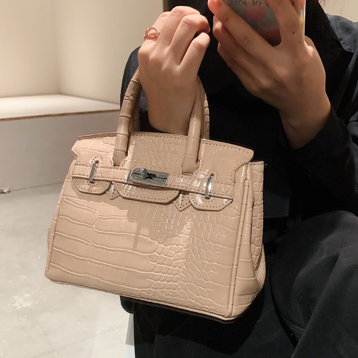 📚 样板间摆件衣帽间软装包纯色石头纹铂金包鳄鱼纹单肩大容量通勤包