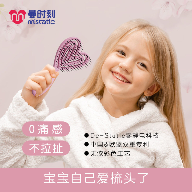📚 曼时刻儿童爱心梳随身便携梳子女孩礼物通顺发梳不拉扯蓬松排骨梳