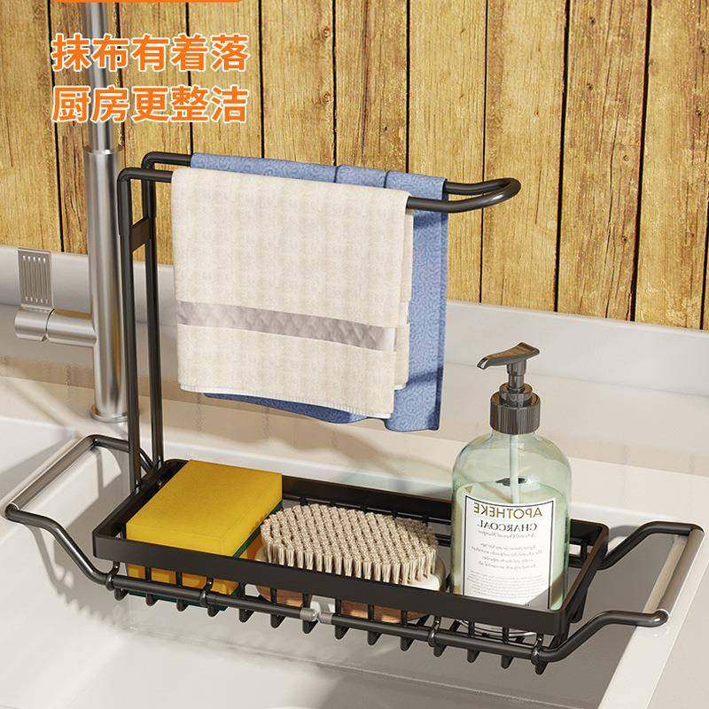 📚 爆款temu不锈钢抹布架水槽海绵擦沥水架厨房抹布晾晒收纳架厨房抹