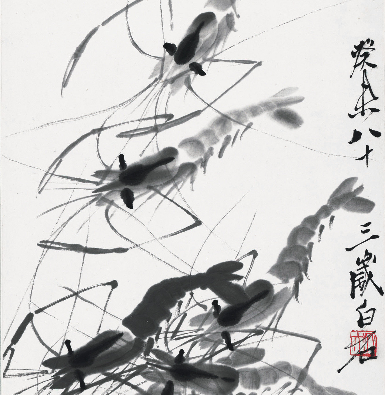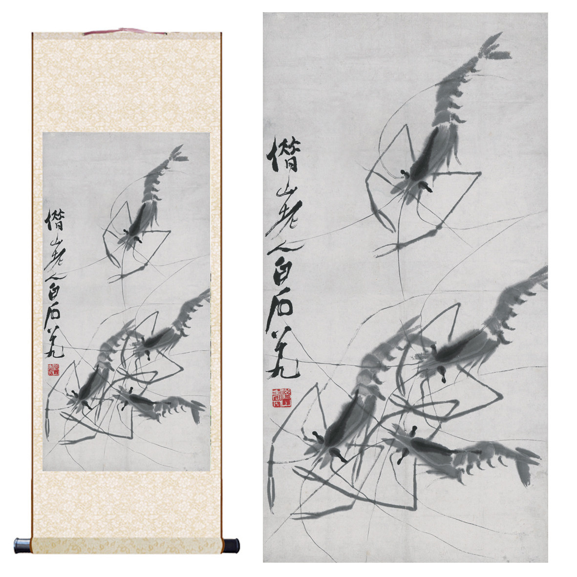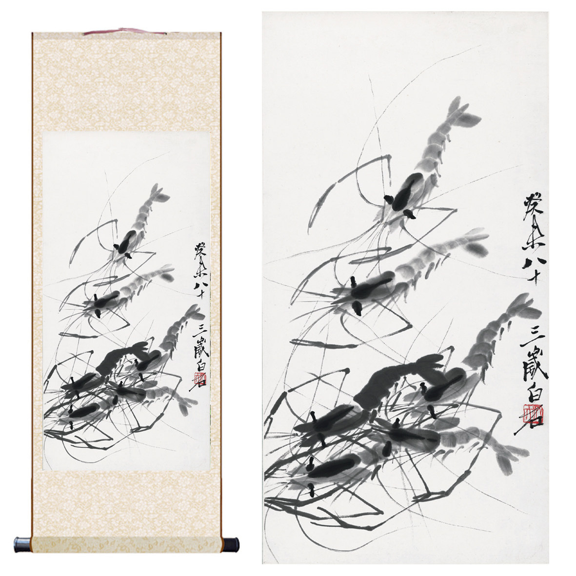 📚 齐白石画虾名家字画近代水墨国画卷轴画真迹复制高清装饰临摹欣赏