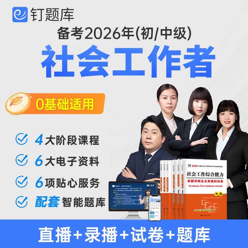 📚 钉题库2026年5月初中级社会工作者考试试卷真题课程课件视频网课
