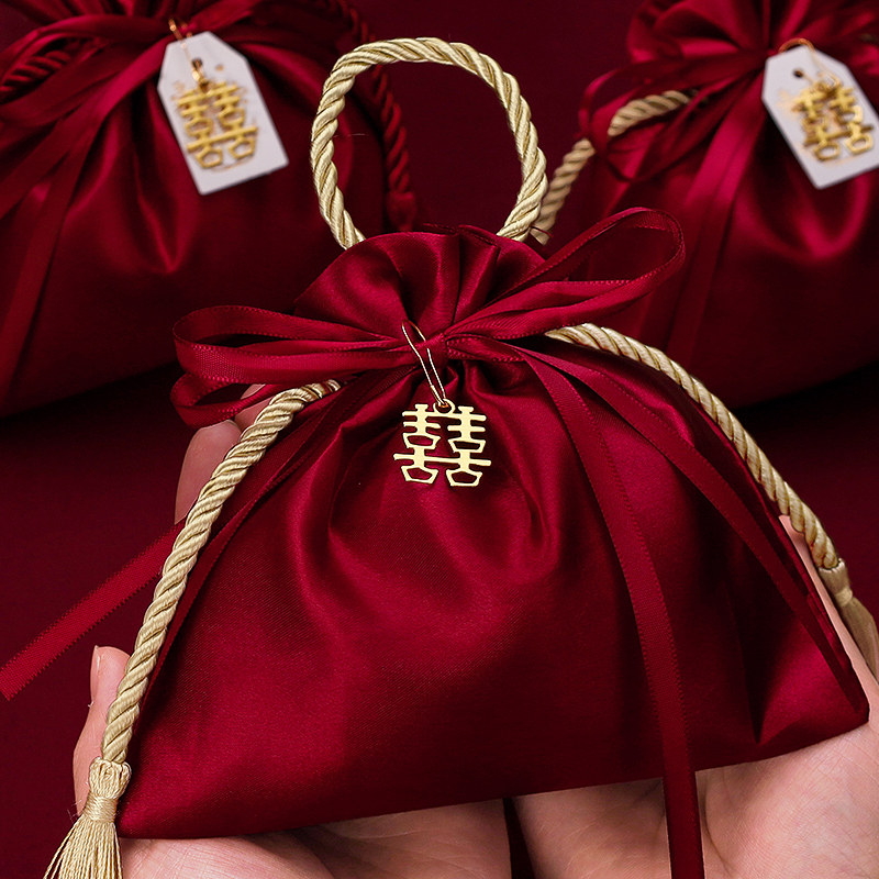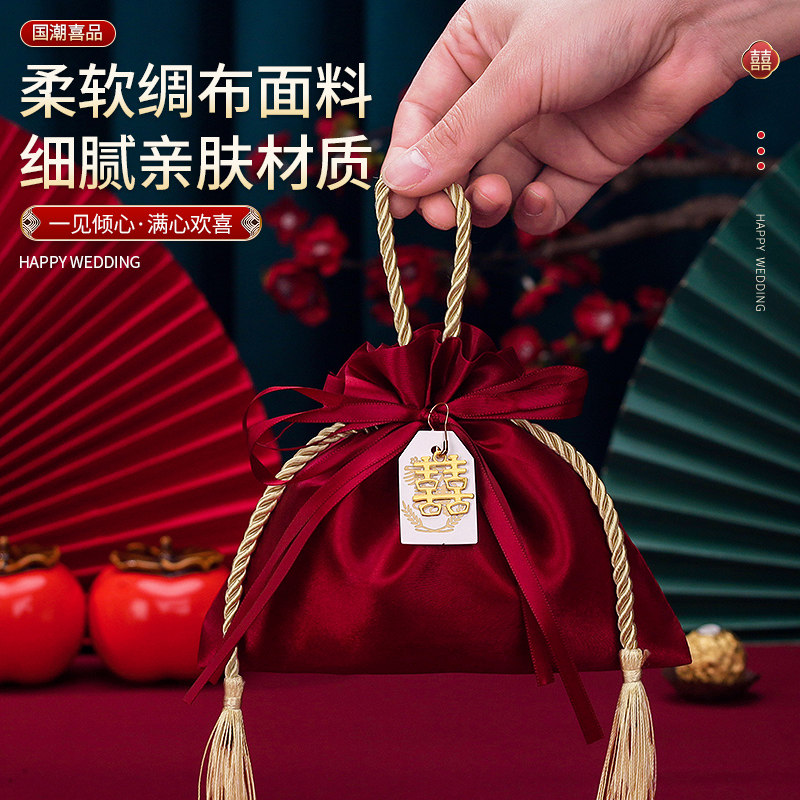 📚 结婚喜糖袋子婚礼伴手礼袋高级感手提布袋订婚大号瓜子花生糖果袋