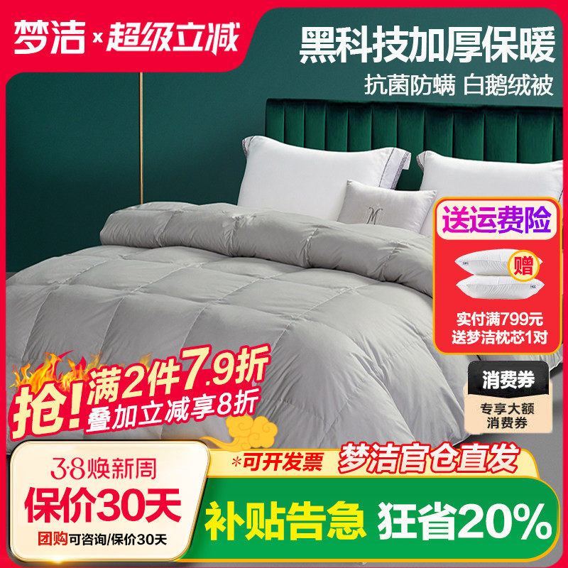 📚 梦洁家纺羽绒被远红外发热抗菌鹅绒厚被保暖加厚灰色冬被被芯被子